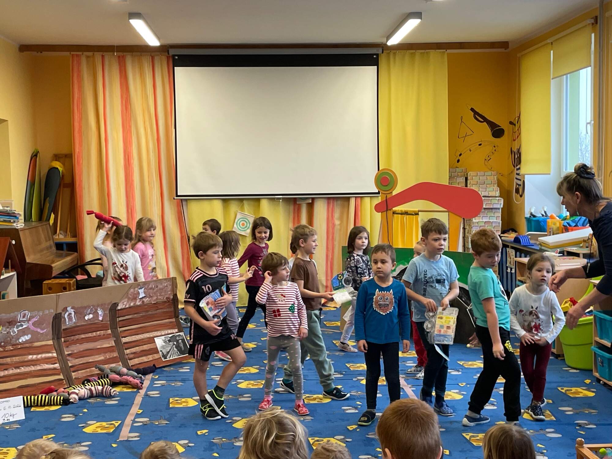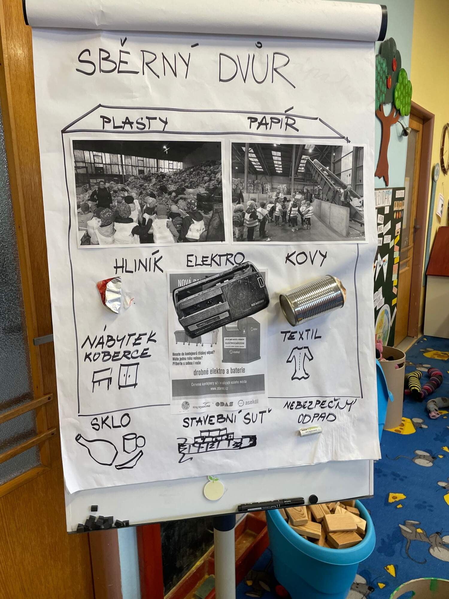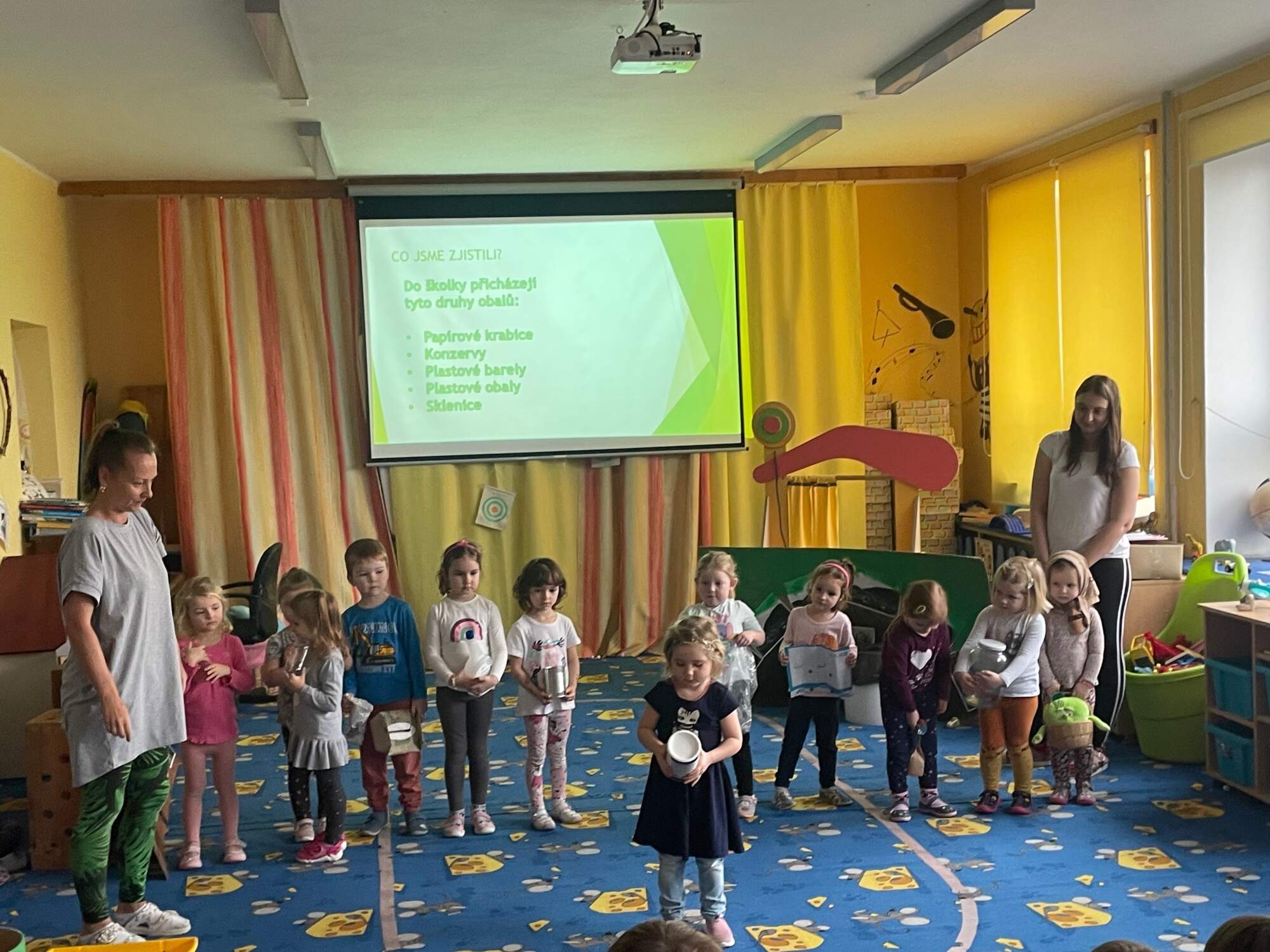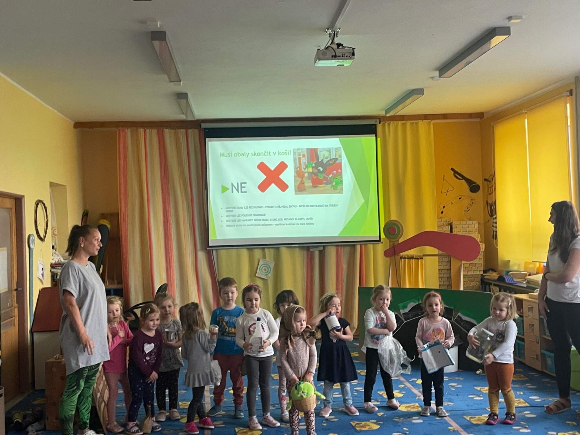 - Kuňka a Žbluňk spolu s malým ekotýmem rozdělují úkoly pro děti z ostatních tříd pro pátrání v tématu ODPADY